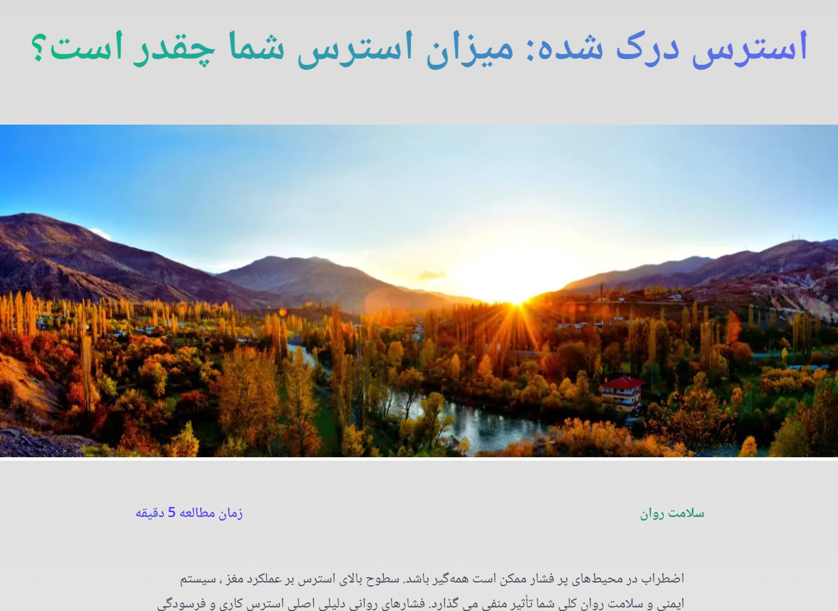 Fully RTL, includes localised articles and perceived stress test in Farsi